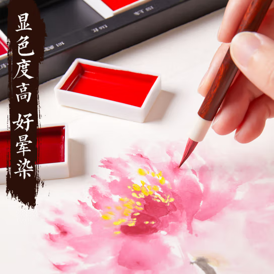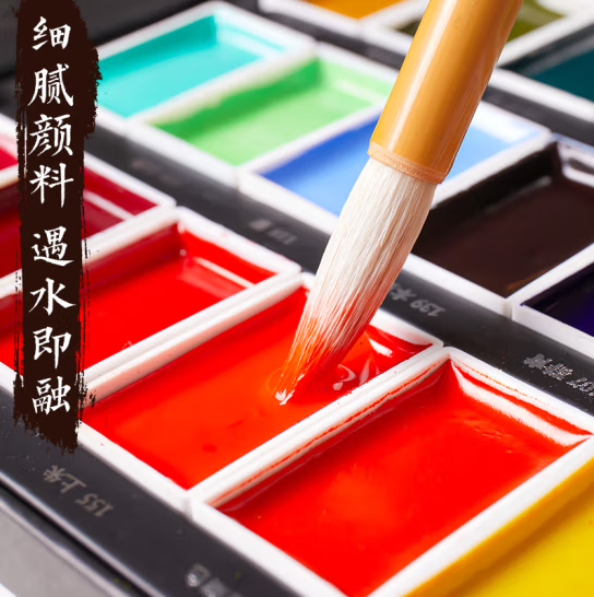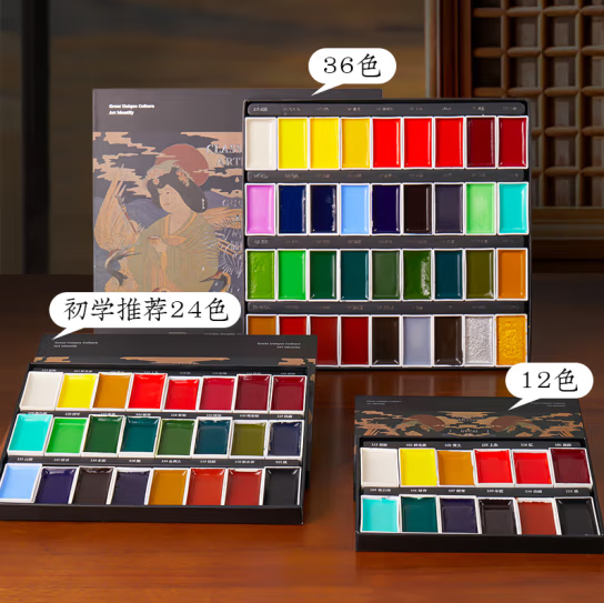 固体国画颜料初学者套装小学生儿童入门中国画水墨画古彩矿物用具鲁本斯正品24色毛笔画水彩